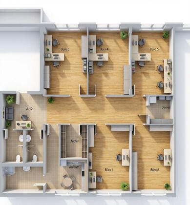 Hier möchten wir Ihnen eine sehr hochwertige Bürofläche in unserem Bürogebäude im Stahlwerk Becker anbieten. Es handelt sich um einen Etagenabschnitt im 1. Obergeschoss.